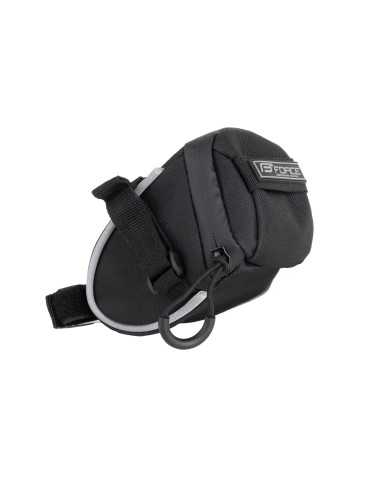 La bolsa impermeable "JET" se puede instalar fácilmente debajo del sillín y en la tija del sillín gracias a sus resistentes correas con cierres de velcro, o se puede quitar fácilmente de la bicicleta. Está fabricado en material resistente con elementos reflectantes, tiene un bolsillo interno de malla, un mosquetón para llaves y su volumen es fácilmente accesible gracias a la cremallera perimetral.