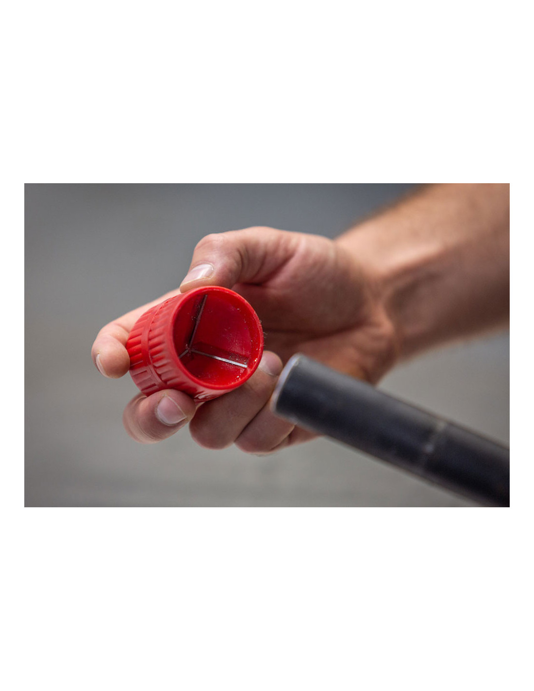 Cree un acabado profesional y sin rebabas en tubos de corte. Después de cortar, simplemente coloque el enrollador sobre el extremo del tubo y gire hasta que se retiren los rebabas.