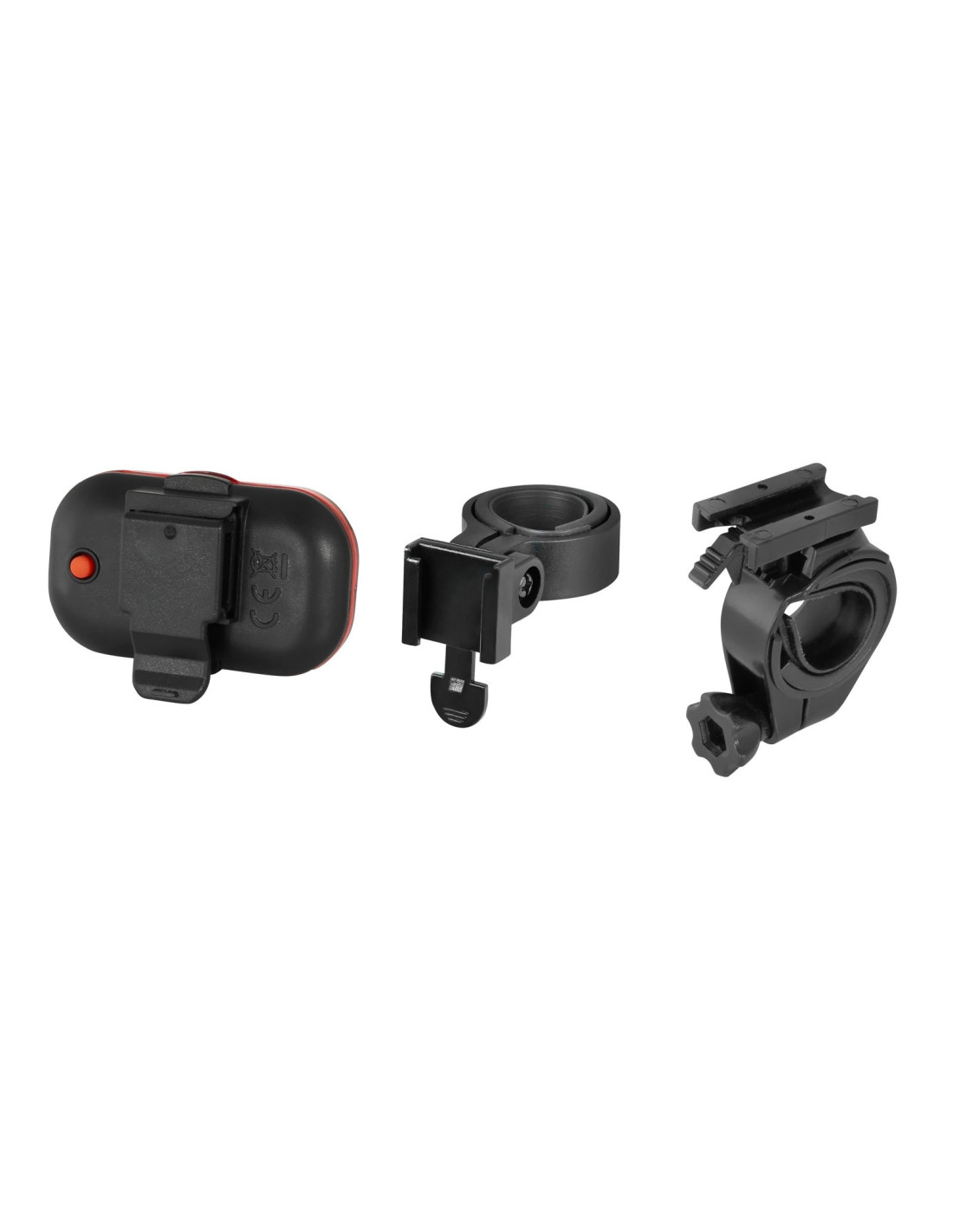 Juego de luces delanteras y traseras FORCE Luz delantera FORCE TRIPLE 45160 3 diodos LED blancos 19LM 3 funciones: iluminación + 2 intermitentes Soporte para manillar: 25,4 - 31,8 mm Fácil de montar en el manillar sin herramientas Luz intermitente trasera FORCE COB15 453875 15 LED rojos COB 2 funciones: iluminación + intermitente Soporte universal en tija 25,4 - 31,6 mm Soporte en el tubo del bastidor trasero o portaequipajes Con clip en la ropa o bolso Incluye 3 pilas AAA + 2 pilas AAA de microcélulas Peso de la luz delantera con soporte: 90 g, trasera: 57 g Embalado en caja FORCE