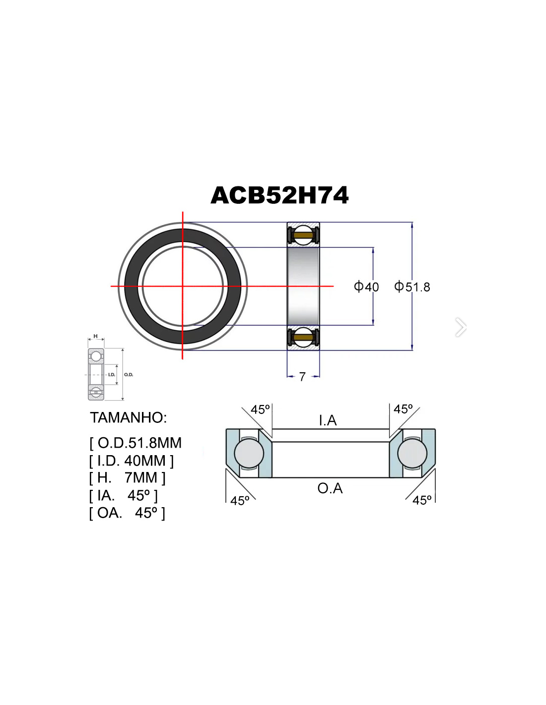 ROLAMENTO PREMIUM ACB518H7F Ø51.8X40X7X45X45 FOIL 22/ADDICT RC