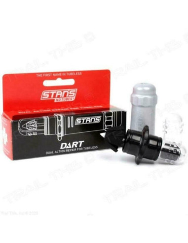 Repara grandes pinchazos y cortes.Reacciona con el sellador de Stan para formar un sello hermético instantáneo.El nuevo material tejido cortado con láser no se deshilacha ni se sale cuando se conduceNueva punta de plástico reforzado con soldadura sónica para mayor resistenciaSe desgasta limpio, no es necesario recortarlo y no se puede sentir mientras conduce, incluso en neumáticos de carretera.Herramienta liviana y compacta que se adapta a la forma de su mano para un uso más preciso e incluye un extractor de núcleo de válvula incorporadoIncluye dos DART precargados para sellar pinchazos múltiples y más grandesLas tapas transparentes mantienen los DART limpios y se desenroscan rápidamente para una implementación rápidaSimple y fácil de recargar