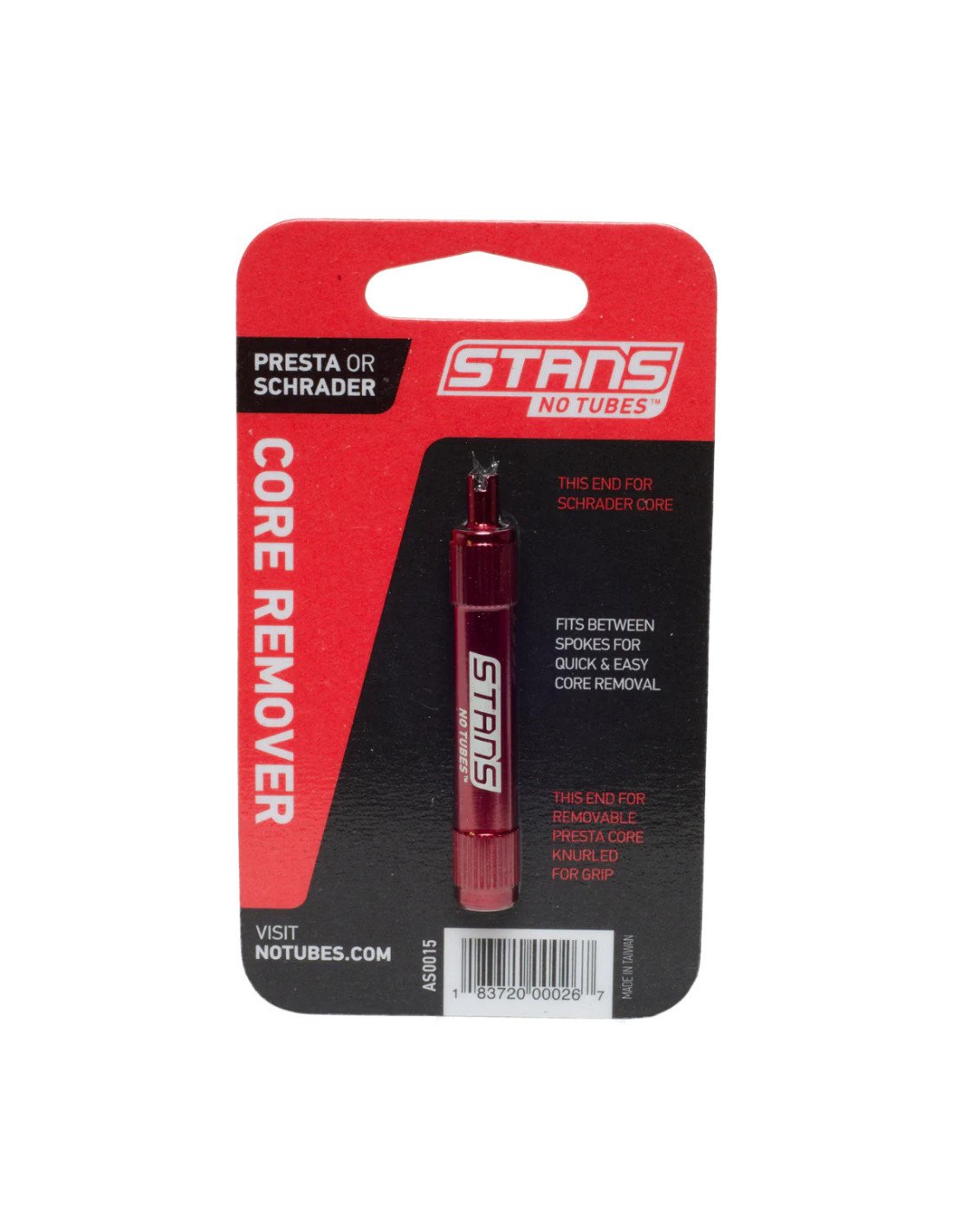 Remove núcleos de válvulas presta e schrader. Acabamento anodizado usinado em CNC com logotipo gravado a laser. Cabe entre os raios para remoção rápida e fácil do núcleo. Possui extremidade serrilhada para uma aderência antiderrapante.