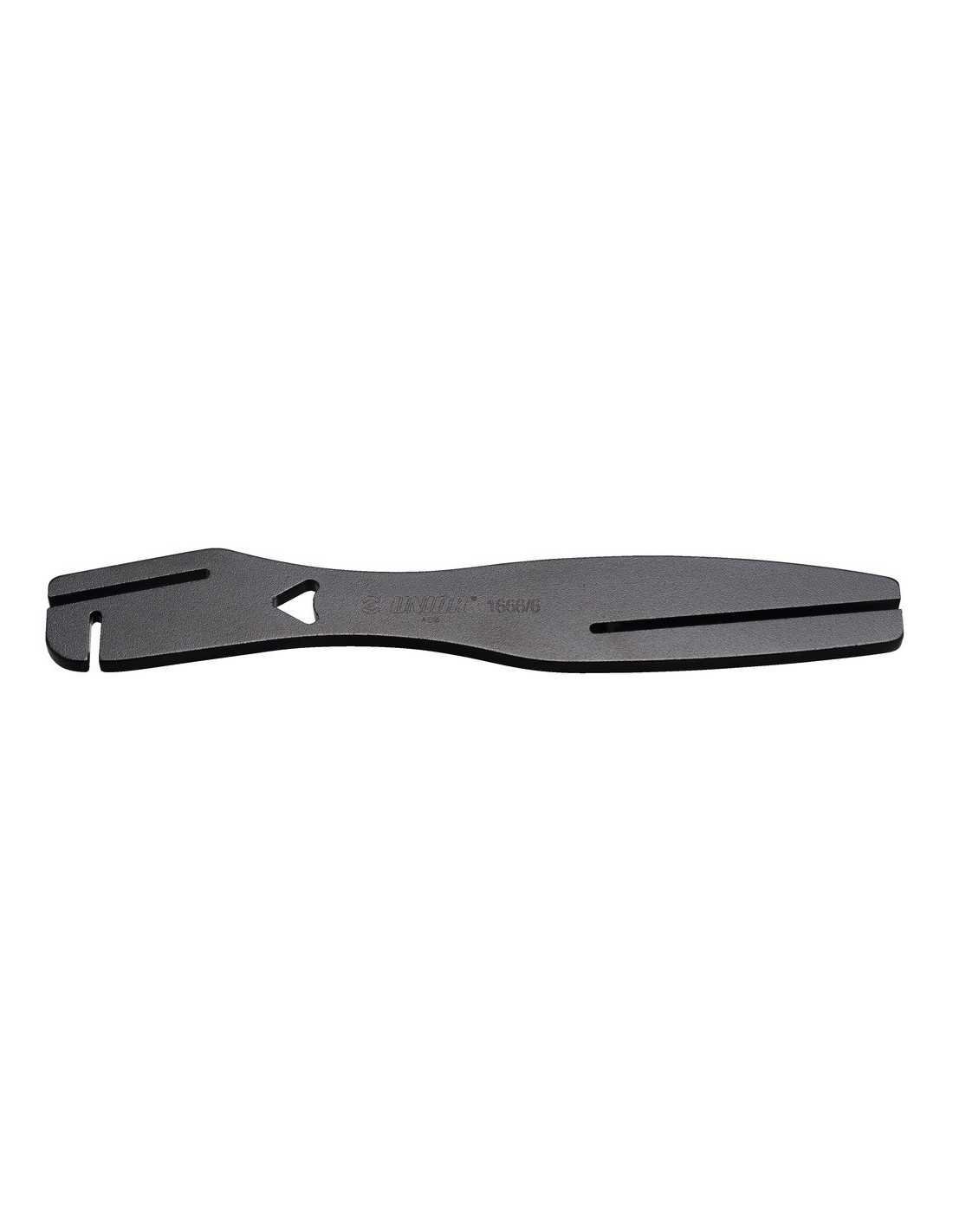 Um garfo de alinhamento de rotor de freio a disco é projetado para endireitar rotores de freio a disco tortos ou empenados. A ferramenta garante o alinhamento adequado do rotor para um ótimo desempenho de frenagem e evita atrito nas pastilhas de freio. Diferentes entalhes na ferramenta permitem acesso ao rotor do freio a disco de vários ângulos e direções, permitindo um ajuste preciso e preciso. É compatível com rotores de até 2,4 mm de espessura, tornando-o compatível com uma ampla gama de sistemas de freio a disco de bicicletas.
