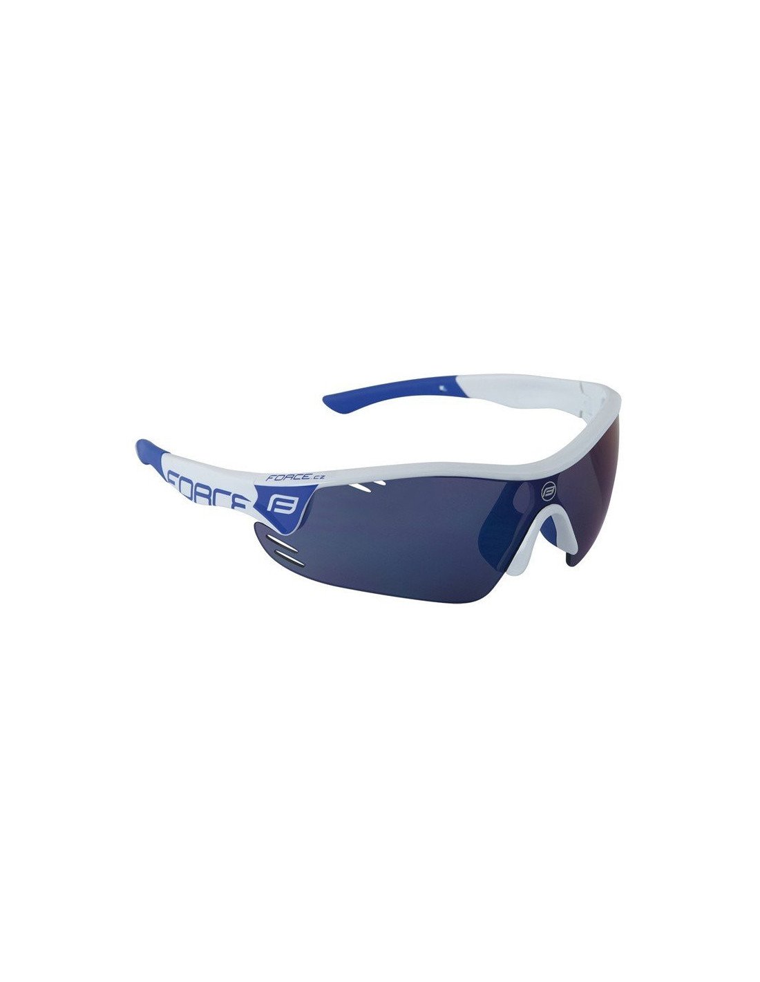 Sports glasses which help you stay alert and protect your eyes from the sun, wind and dust. Their advantages are anti-fog ventilation holes and an extended side part of the lens. You can buy these glasses with photochromic lense too. polycarbonate lenses, UV 400 basic inserted laser blue lenses filter category 3, transmittance 11%, extended side part of the lenses with anti-fogging vents extra large side FORCE logo on arms microfiber pouch packed in paper box weight: 29 g