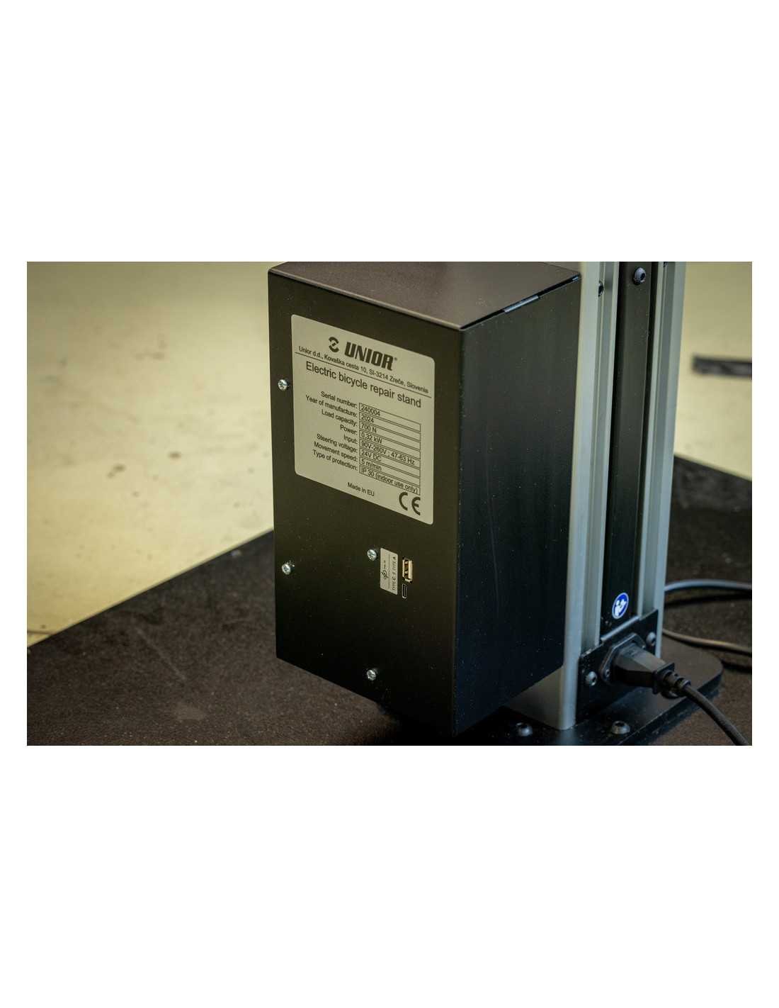 Construit autour d'une colonne en aluminium monobloc robuste, le support de réparation électrique Unior offre une stabilité inégalée tout en dissimulant tous les fils à l'intérieur, garantissant un espace de travail sans encombrement pour un entretien efficace du vélo. Il soulève sans effort des vélos jusqu'à 70 kg à la hauteur souhaitée, garantissant des conditions ergonomiques optimales pour chaque technicien et chaque tâche de réparation. Le réglage sans fin de la hauteur facilite l'abaissement ou le levage du vélo en appuyant simplement sur un bouton, tandis que le système d'arrêt automatique assure un positionnement précis. Grâce aux limiteurs de course réglables par bouton, les utilisateurs peuvent personnaliser la portée du support, tandis qu'un mécanisme de sécurité intégré protège à la fois le technicien et le vélo. Grâce au système de commande bidirectionnel polyvalent, le technicien peut choisir entre faire fonctionner le support via le panneau de commande ou la pédale, en fonction des préférences et des besoins individuels. De plus, une lumière LED réglable intégrée assure un éclairage constant, quelles que soient les conditions d'éclairage environnementales. Construit pour durer, le support de réparation électrique Unor est conçu pour la longévité, nécessite un minimum d'entretien et offre un fonctionnement sans tracas pour les années à venir. Conçu pour être entièrement réparable par l'utilisateur, accompagné de pièces de rechange et d'instructions de réparation facilement disponibles.