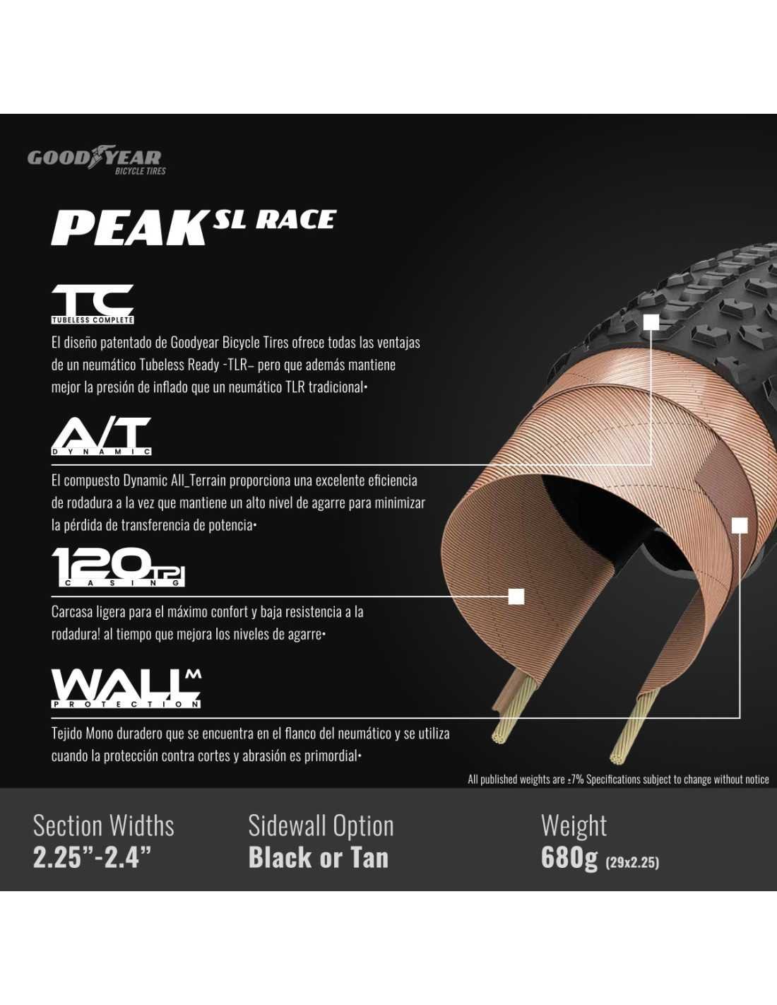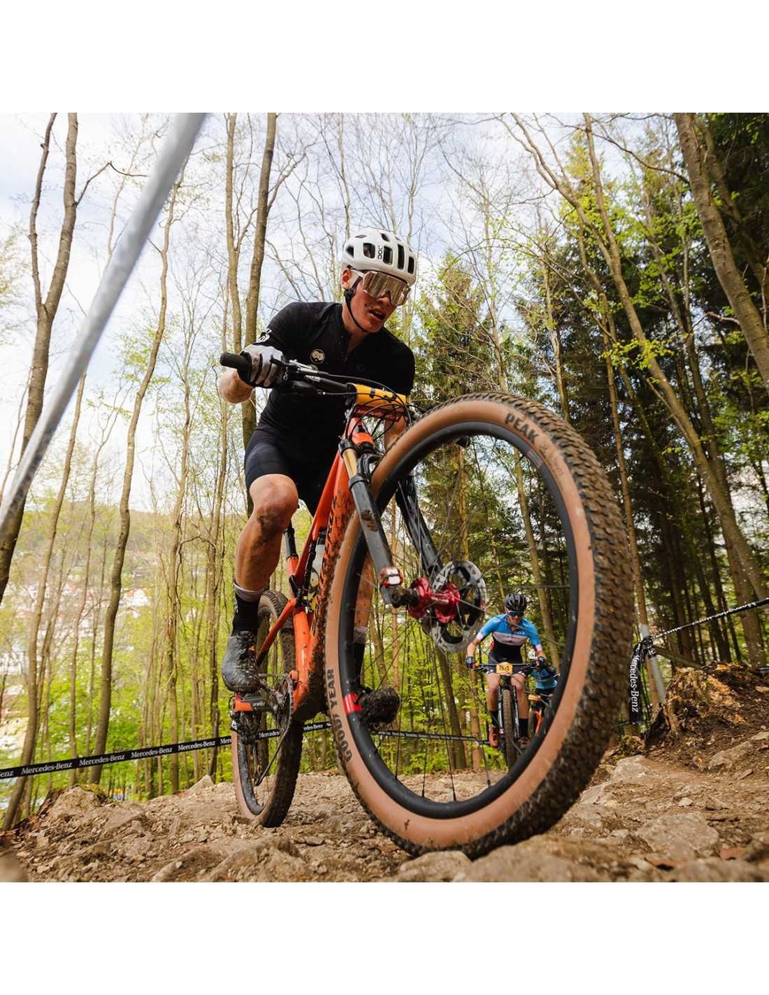 Le pneu Goodyear Peak SL est léger: il ne pèse que 710 g en 29x2,4 mesuré, ce qui en fait l'un des pneus les plus légers de sa classe. Les cyclistes peuvent obtenir une accélération plus rapide et faire une meilleure manipulation, qui est renforcée par le soutien et la protection supplémentaires de leur couche de protection latérale M: Wall, ce qui le rend idéal pour les races de fond. Enthousiastes et professionnels des carrières de cross-country, qui recherchent un maximum de performances et de vitesse. Où fonctionne ce pneu mieux? Sur la piste de course XC, où chaque Watt compte et chaque deuxième compte. Couleur du flanc Ready Tacheeless complete ™ / Tennessless: noir / transparent