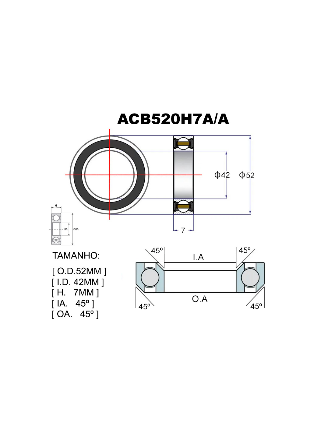 ROLAMENTO PREMIUM ACB520H7A/A Ø52.0X42X7X45X45 ACROS INTEGRATED