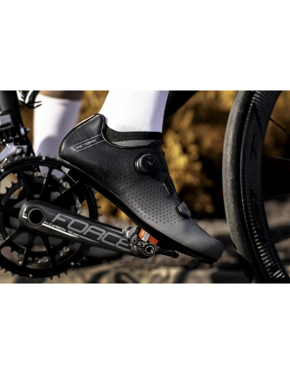Las zapatillas MTB WARRIOR se caracterizan por un diseño elegante y la mejor tecnología de producción. El elemento importante es la suela exterior totalmente de carbono que garantiza la máxima rigidez. Las ruedas aseguran un ajuste rápido de los zapatos. Ganador de Campeonatos Nacionales en XCM 2021 Material parte superior: piel sintética Suela: fibra de carbono Índice de rigidez: 10 Peso: 345 g (1/2 en talla 42) Fijación con 2 pomos ATOP A-A41 Parte de la puntera del zapato con goma - protección contra rozaduras Agujeros de aire para transpirabilidad. Plantilla anatómica para zapatos EN CALIDAD EXTRA FORCE SHOCK Incluye pernos y llave reemplazables. Las tallas corresponden a las tallas estándar de los zapatos casuales. Embalado en caja FORCE