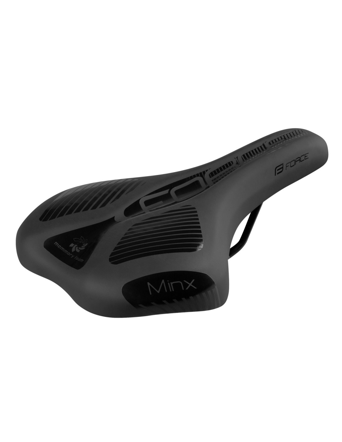 Sillín GEL, Logotipo y estructura de FORCE en relieve NO incluye abrazadera de tija Plataforma del asiento: nailon Rieles de acero con escala Material: vinilo Tamaño: 270 x 160 mm Peso: 425g Embalado en tarjeta FORCE